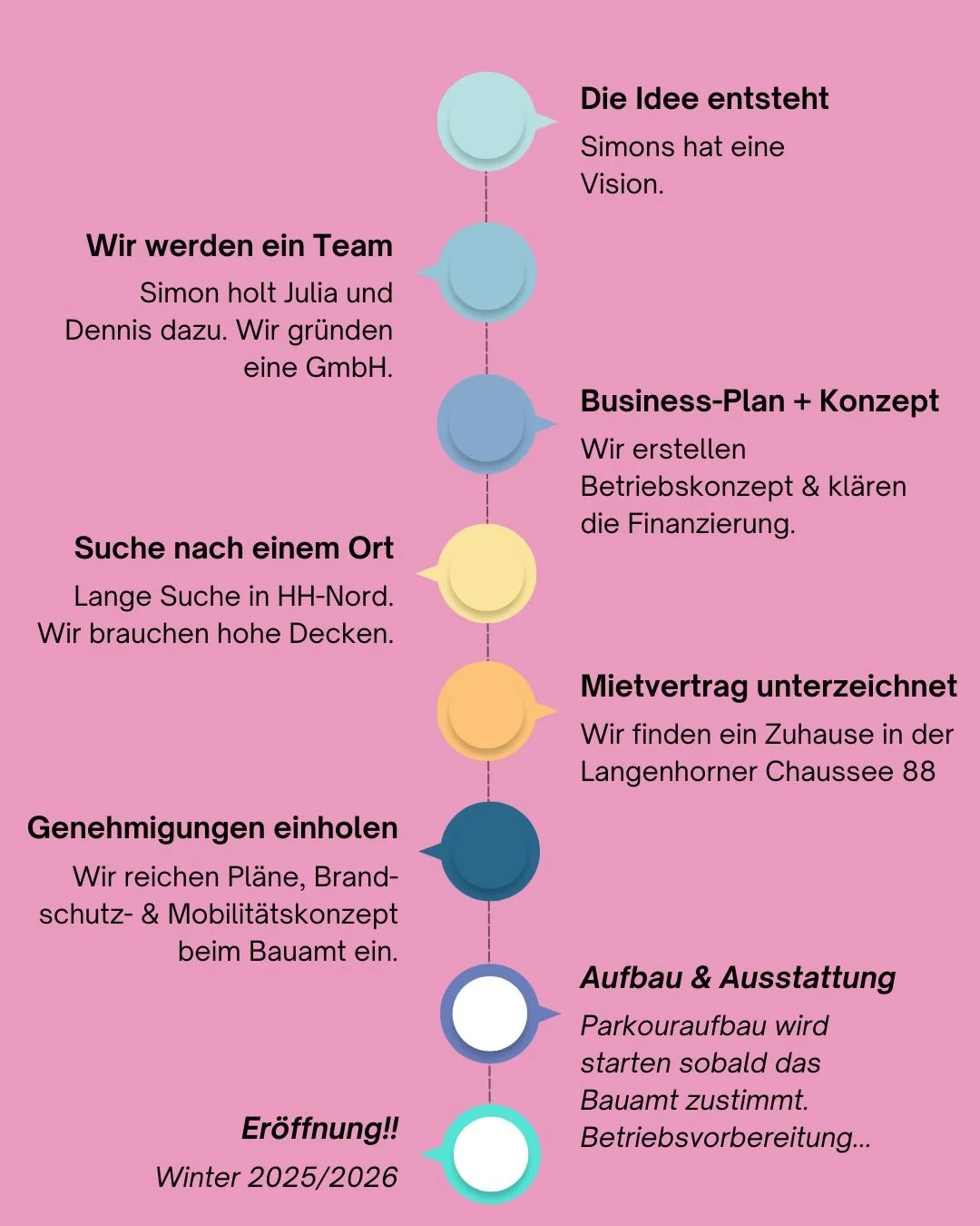 Am Anfang stand Simons Traum: eine Parkourhalle für Kinder im schönen Hamburg.